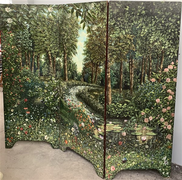 Paravento a tre ante dipinte a paesaggi (cm 300x170) (difetti)
