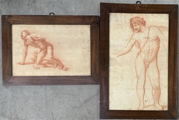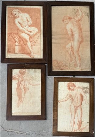 Lotto composto da sei disegni a sanguigna raffiguranti figure virili, di epoche e misure diverse.