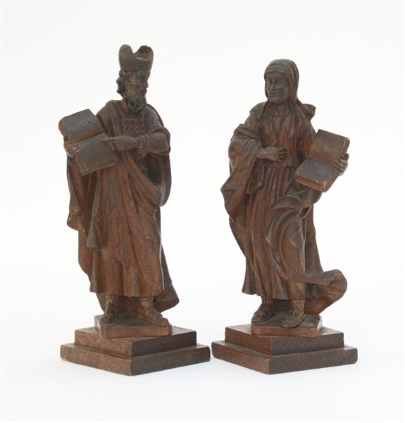 Arte del secolo XIX due figure lignee a tutto tondo raffiguranti Dante e Profeta (h. cm 30) (difetti)