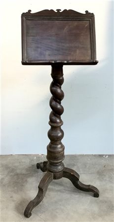 Doppio leggio in legno con colonna a torciglione terminante a piedi sagomati (h