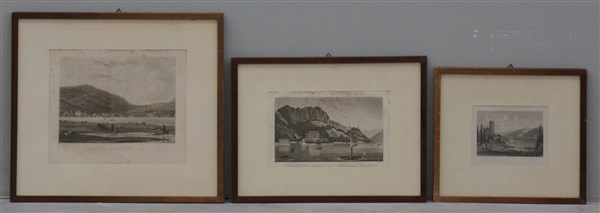 Lotto composto da tre incisioni del secolo XIX raffiguranti "Borgovico", "Villa Sommariva" e "Bellagio". In cornici