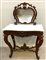 Toilette lastronata in noce di forma sagomata con specchio basculante, cassetto