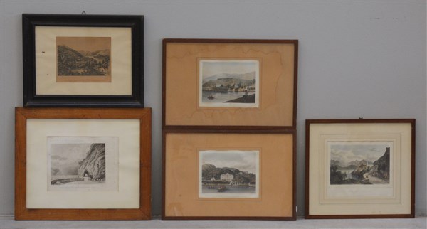 Lotto composto da cinque incisioni del secolo XIX raffiguranti scorci del Lago