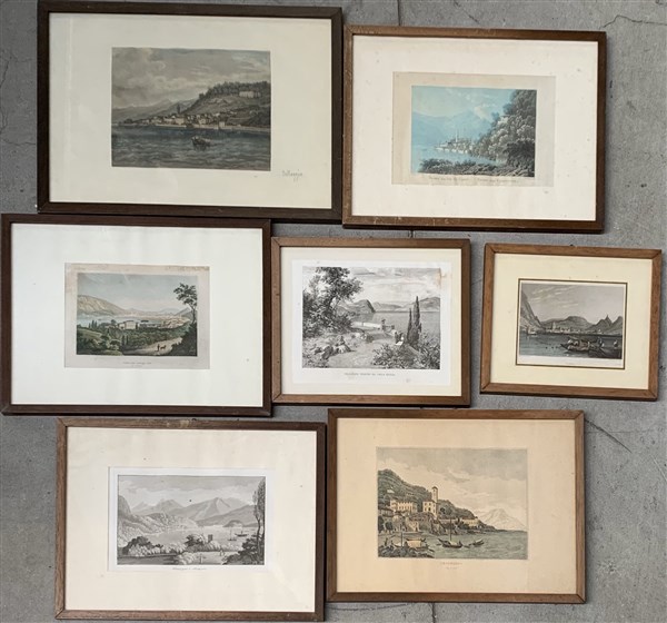 Lotto composto da sette incisioni del secolo XIX raffiguranti scorci del Lago di Como