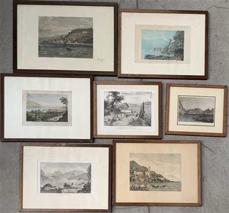 Lotto composto da sette incisioni del secolo XIX raffiguranti scorci del Lago d