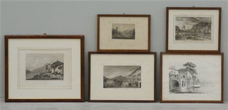 Lotto composto da cinque incisioni del secolo XIX raffiguranti scorci del Lago