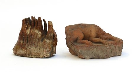 Lotto composto da una mandibola fossile e un frammento di scultura in terracott