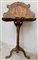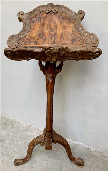 Leggio in noce con piano, montante e gambe intagliate a volute e fiori. Fine se