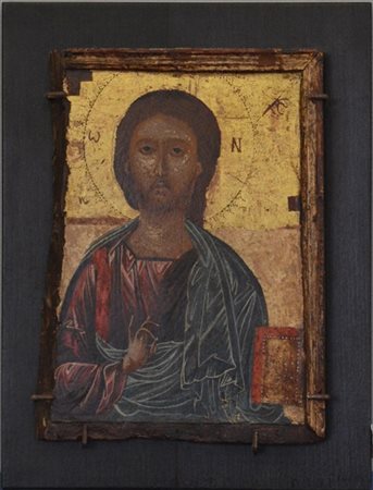 Icona a fondo oro del secolo XVIII raffigurante Cristo Pantocratore (cm 27x20) (difetti, restauri e mancanze)