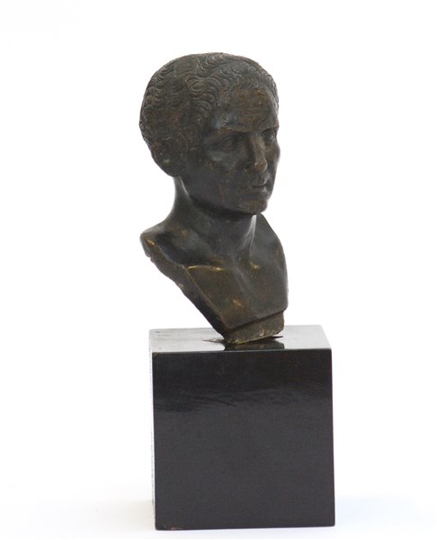 Ignoto "Giulio Cesare" scultura in bronzo (cm 20) poggiante su base in legno. Titolata alla base (difetti)