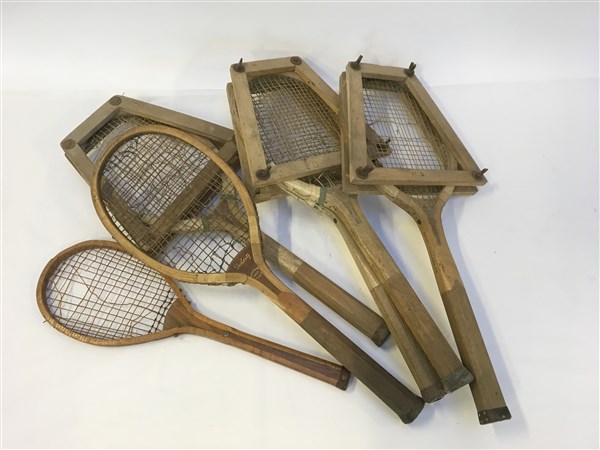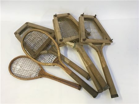 Cartone contenente numerose racchette da tennis degli anni '40 (difetti)