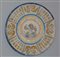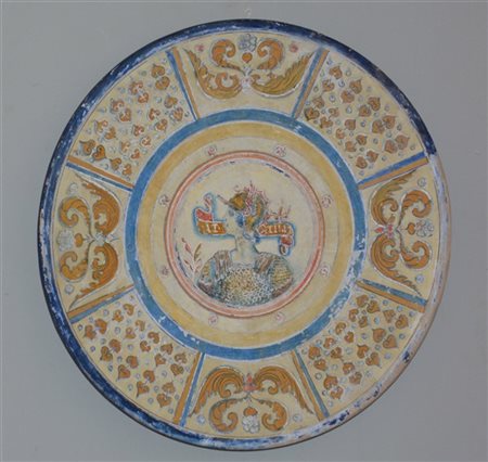 Piatto in terracotta decorato in policromia in stile antico (d cm 42) iscritto