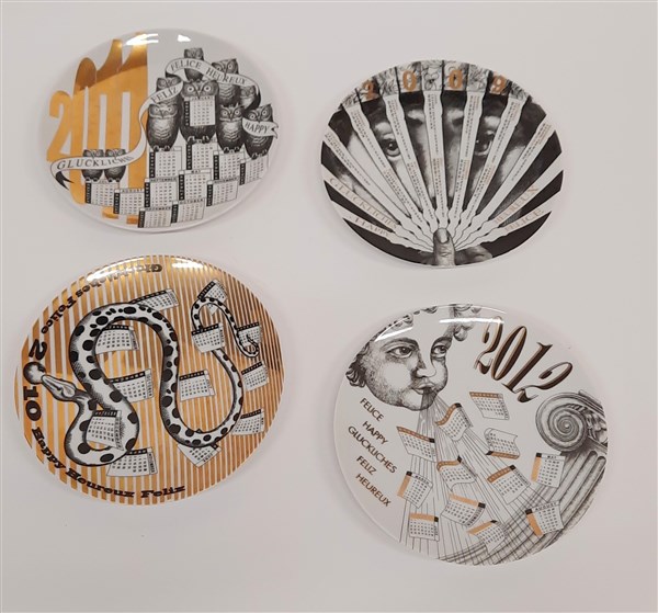 Barnaba Fornasetti Quattro piatti della serie "Capodanno". Milano, 2009/2012. Po