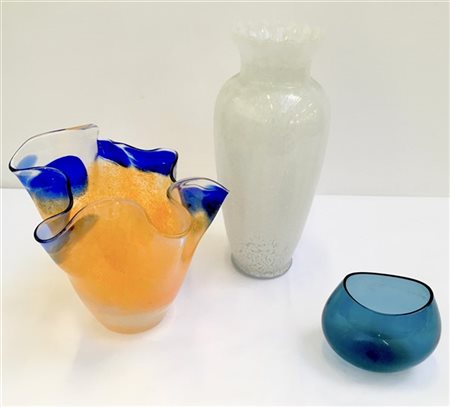 Lotto composto da tre vasi in vetro soffiato di epoche e manifatture diverse. S
