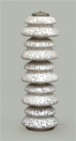 Lampada da terra composta da elementi in vetro incamiciato trasparente incolore e lattimo; struttura in acciaio. Italia, anni '70/'80. (h cm 125) (lievi difetti)