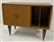 Mobiletto a due ante e due vani in legno impiallacciato, gambe rastremate con p