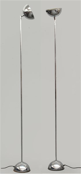 Lotto di due lampade da terra in metallo cromato con paralume a coppa. Italia, anni '80. (h cm 194 e h cm 190) (lievi difetti e manomissioni)