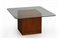 Tavolino da salotto di forma cubica in legno massello, piano in cristallo. Italia, anni '70. (cm 40x40,5x40) (difetti)