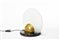 Lampada da tavolo modello "Gong". Produzione Skipper & Pollux, Italia, anni '70. Base in marmo nero venato, lamina di metallo colore bronzo, vetro acidato sulla superficie interna. (cm 49x47x39)