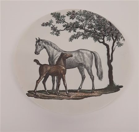Piatto della serie "Mother Day Plate". Produzione Fornasetti, Milano, anni '80. Porcellana serigrafata. Marcato e numerato sotto la base. (d cm 26)