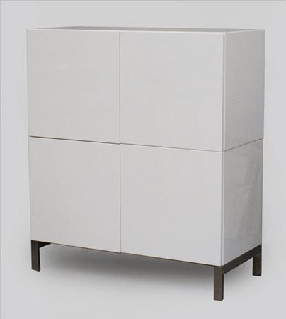 Mobile contenitore a quattro ante con struttura in legno laccato bianco, piedi in metallo cromato. Italia, anni '90/2000. (cm 103,5x120x47,5) (lievi difetti)