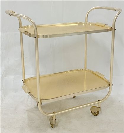 Carrello portavivande in metallo nichelato con due ripiani asportabili. Italia,