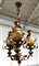 Seguso (Attribuito) Grande lampadario a tre luci in ferro battuto dorato e verni