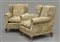 Coppia di poltrone imbottite e rivestite in tessuto a motivi vegetali, piedini