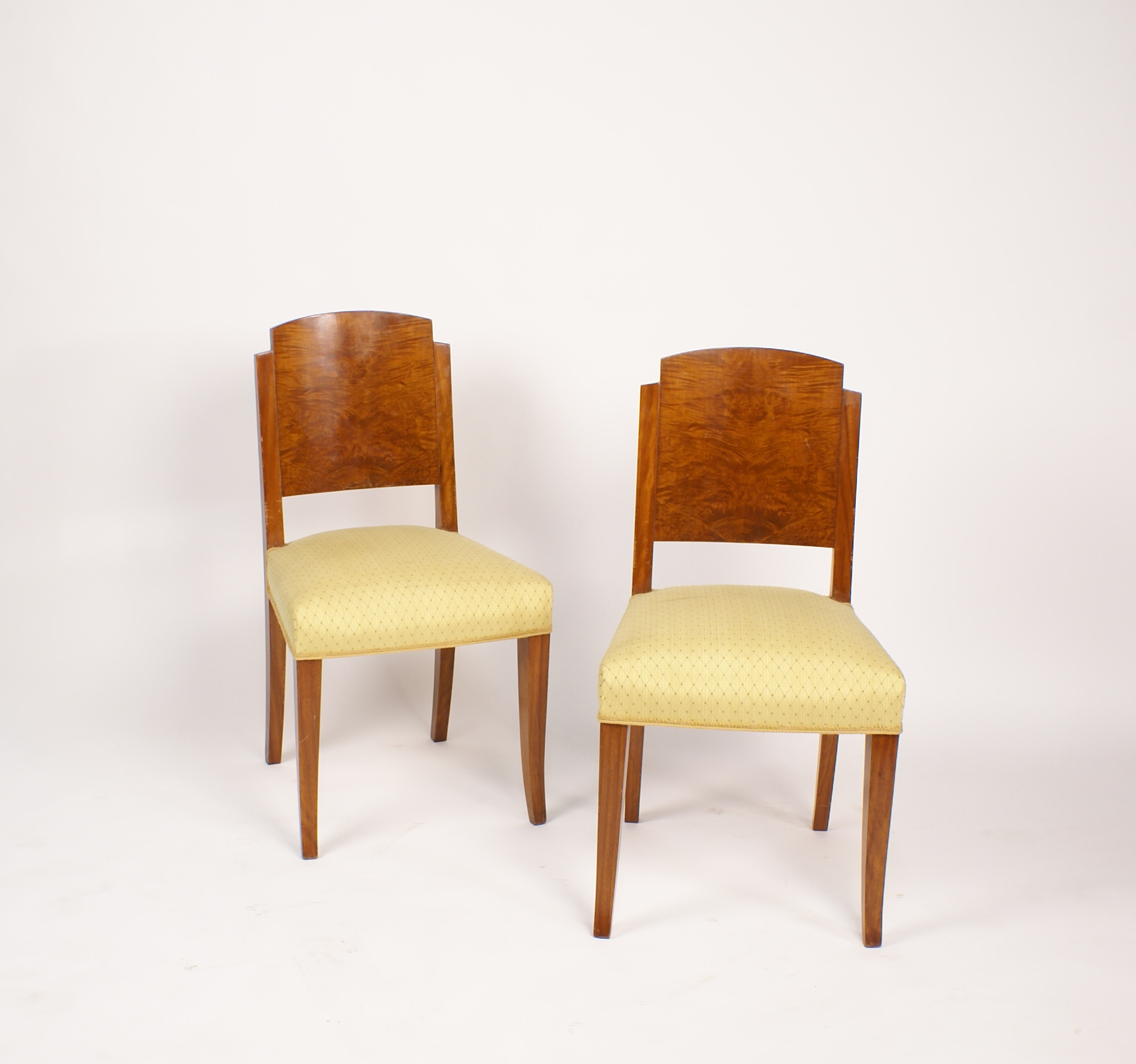 QUATTRO SEDIE DECO IN RADICA Francia XX Sec. schienale sagomato con seduta imbottita e rivestita in tessuto 85x46x45 cm.