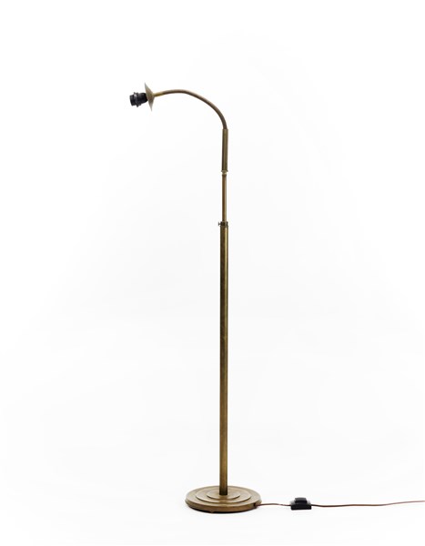 Lampada da terra con fusto in ottone, base in metallo. Italia, anni '50. (h max cm 160)