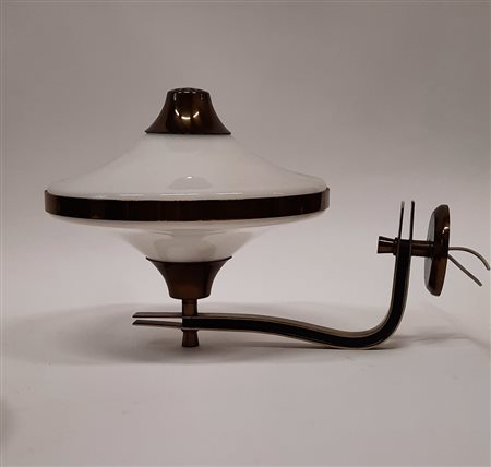Lampada da parete con struttura in ottone e paralumi in metacrilato opalino. Italia, anni '60. (cm 24x22x32) (lievi difetti)