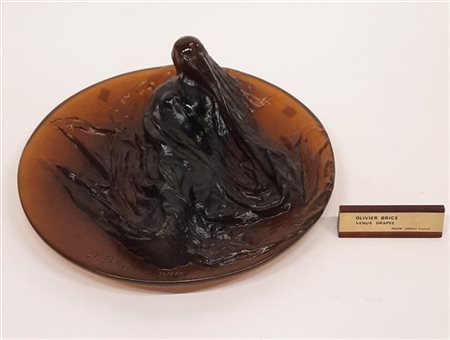 Olivier Brice "Vénus Drapée" Scultura in pasta vitrea a cera persa color ambra.