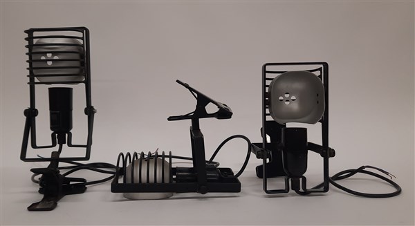 Lotto di tre lampade da tavolo modello "Sintesi pinza". Produzione Artemide, Milano, 1975. Acciaio verniciato nero. (h cm 20,5) (lievi difetti)