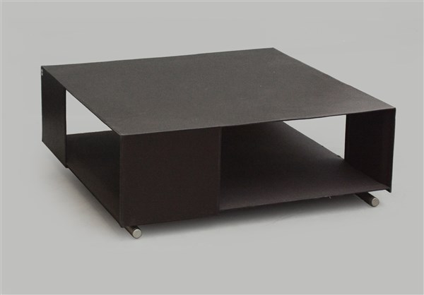 Tavolino modello "Groundpiece". Produzione Flexform, Italia, 2001. Struttura in metallo, rivestimento in cuoio sintetico. (cm 97,5x35x97,5) (lievi difetti)