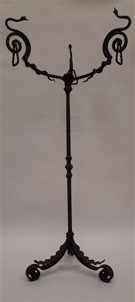 Treppiede-portavaso in ferro battuto a volute, foglie in lamina sbalzata e terminali decorati con tre serpenti attorcigliati. Milano, 1910ca. (h cm 112) (lievi difetti)