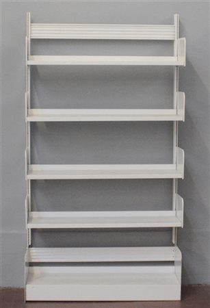 Libreria a sei ripiani modello "Congresso". Italia, anni '60/'70. Metallo laccato bianco. (cm 97,5x180x38) (lievi difetti e manomissioni)
