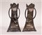 Coppia di candelieri in peltro argentato decorato con motivi liberty a fiori e