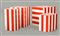 Lotto composto da quattro cubi in legno dipinti bianco con fasce adesive rosse.