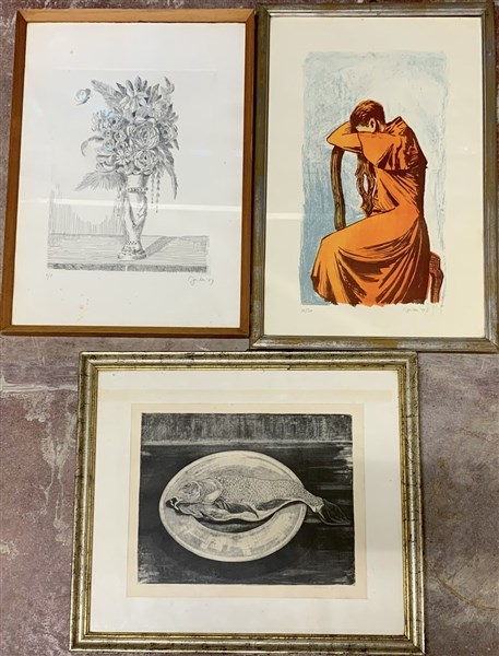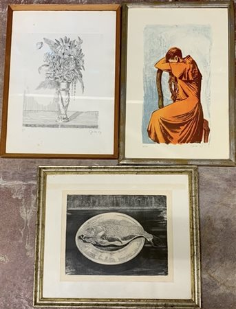 Lotto di tre litografie moderne di autori, soggetti e misure diverse, in cornic