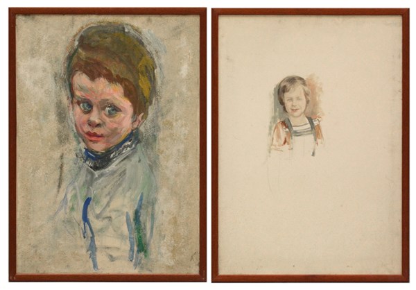 Lotto di due dipinti ad olio su telaraffigurenti "Fanciulli" (cm 70x50) In cornici