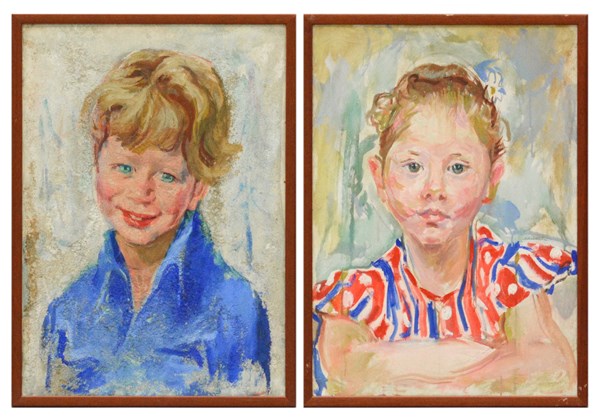 Lotto di due dipinti ad olio su tela raffiguranti "Fanciulli" (cm 70x50) In cornici