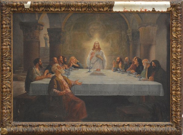 Firma indecifrata "L'ultima cena" olio su tela (cm 70x100) Firmato in basso a destra. In cornice