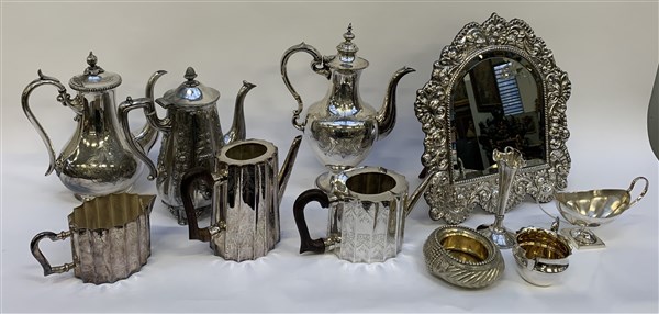 Cartone contenente numerosi oggetti di varie forme in metallo argentato (difetti)