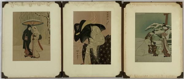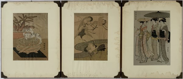 Lotto di sei stampe su seta in stile giapponese (difetti) Italia, secolo XX (43