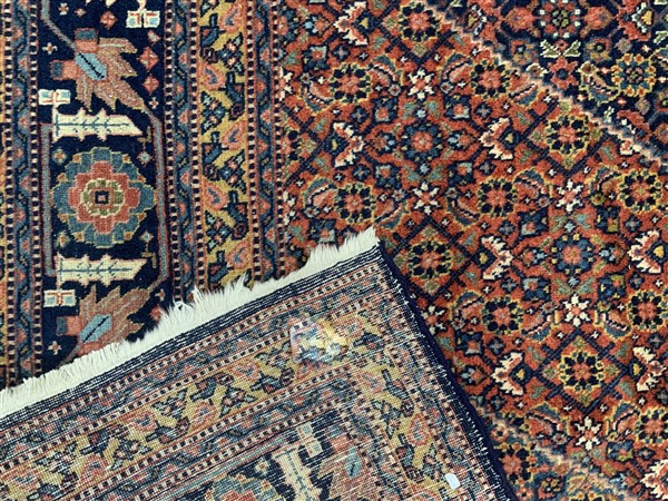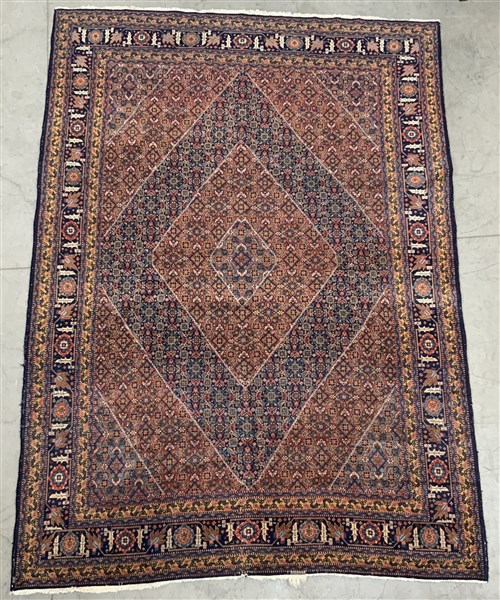Tappeto Tabriz, Persia, Secolo XX. Decoro a medaglioni concentrici in policromia decorati con motivo Herati (Gravi difetti, rapature e vecchi restauri) (Cm 329x237)