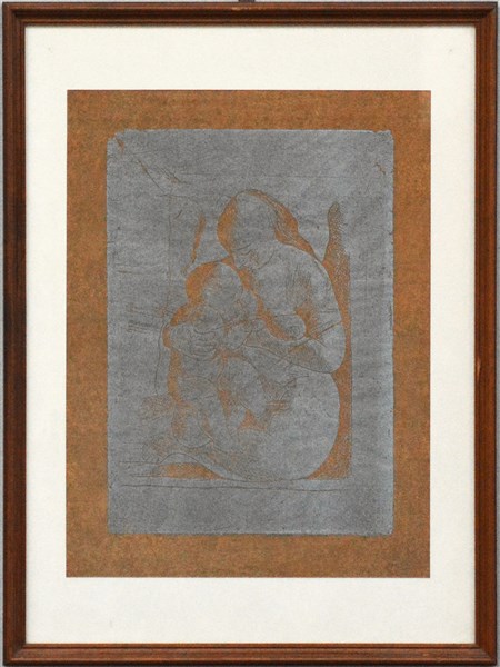 Felice Casorati "Madre e figlio" incisione lastra cm 35x25 timbro a secco "Atel