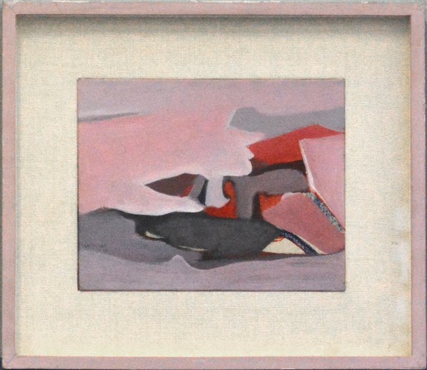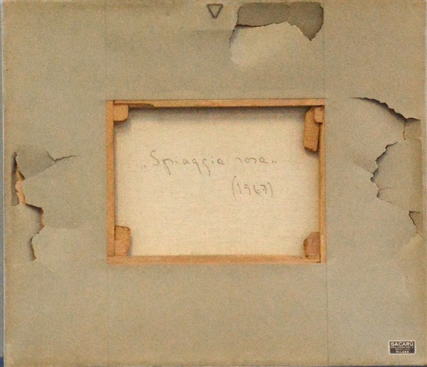 Irmelin Slotfeldt "Spiaggia rosa" 1967 olio su tela cm 23x30 firmato e datato in