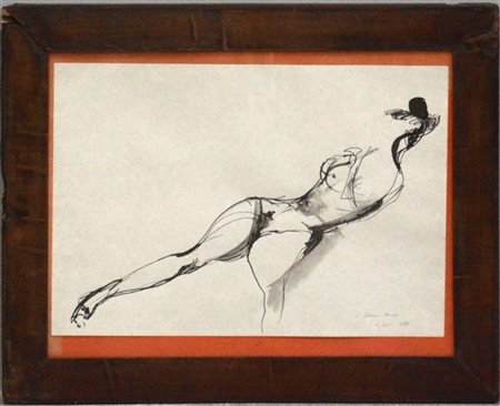 Giuseppe Ajmone "Nudo" 1959 china su carta, cm 35x50 Firmato, dedicato e datato