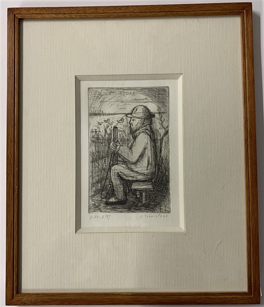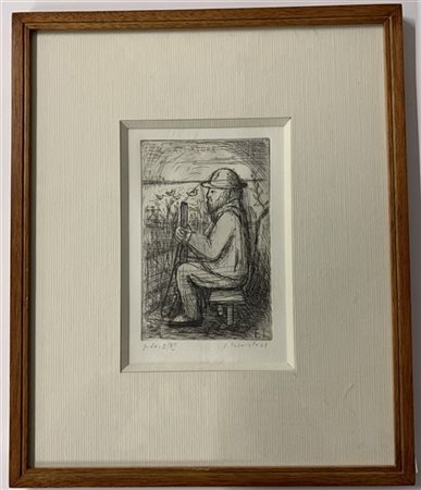 Eugenio Tomiolo "Il cacciatore" 1949 acquaforte e puntasecca - prova d'artista L
