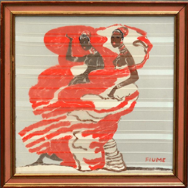 Salvatore Fiume "Somale" serigrafia su foulard in georgette di seta cm 75x75 fi